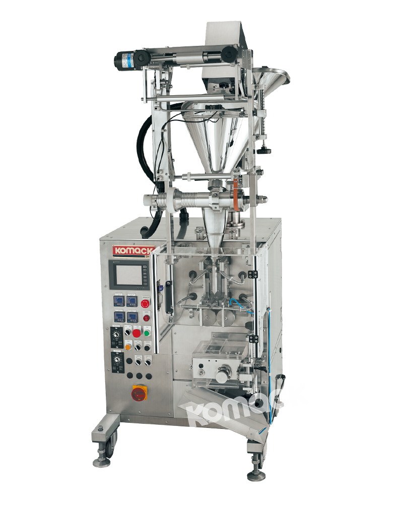 該機是重視簡易操作性的粉末顆粒自動充填包裝機。制袋長度可變,標準配有色標光電跟蹤控制裝置。因為本機具有計量盤式的容量計量和螺桿計量這兩種計量方法,所以可對應更多種類的充填物。